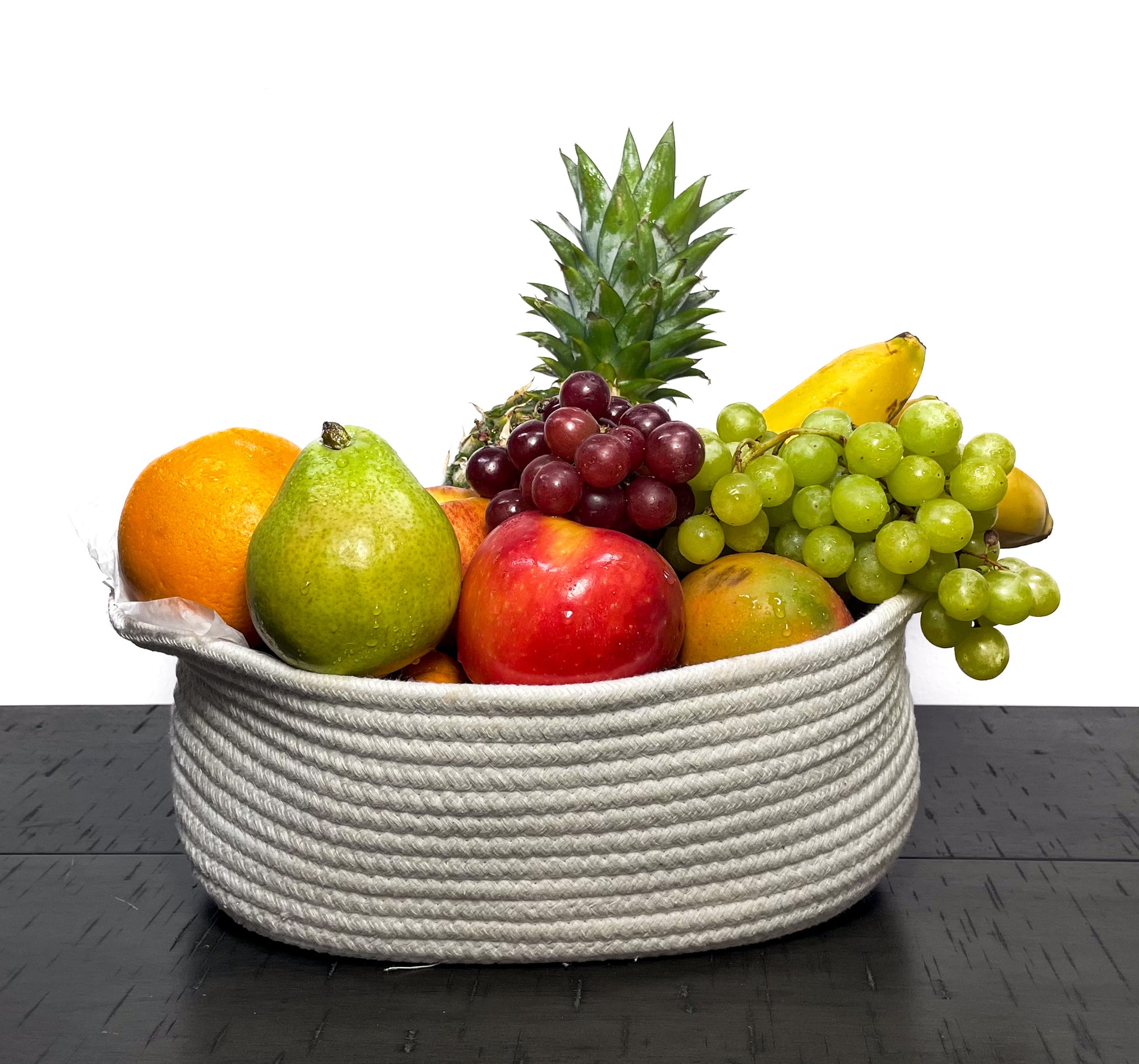 A Gift of Sunshine! This vibrant fruit basket is overflowing with deliciousness, featuring a delightful assortment of fresh fruits like pears, oranges, grapes, and pineapple. It's the perfect way to show you care while encouraging a healthy and happy lifestyle.