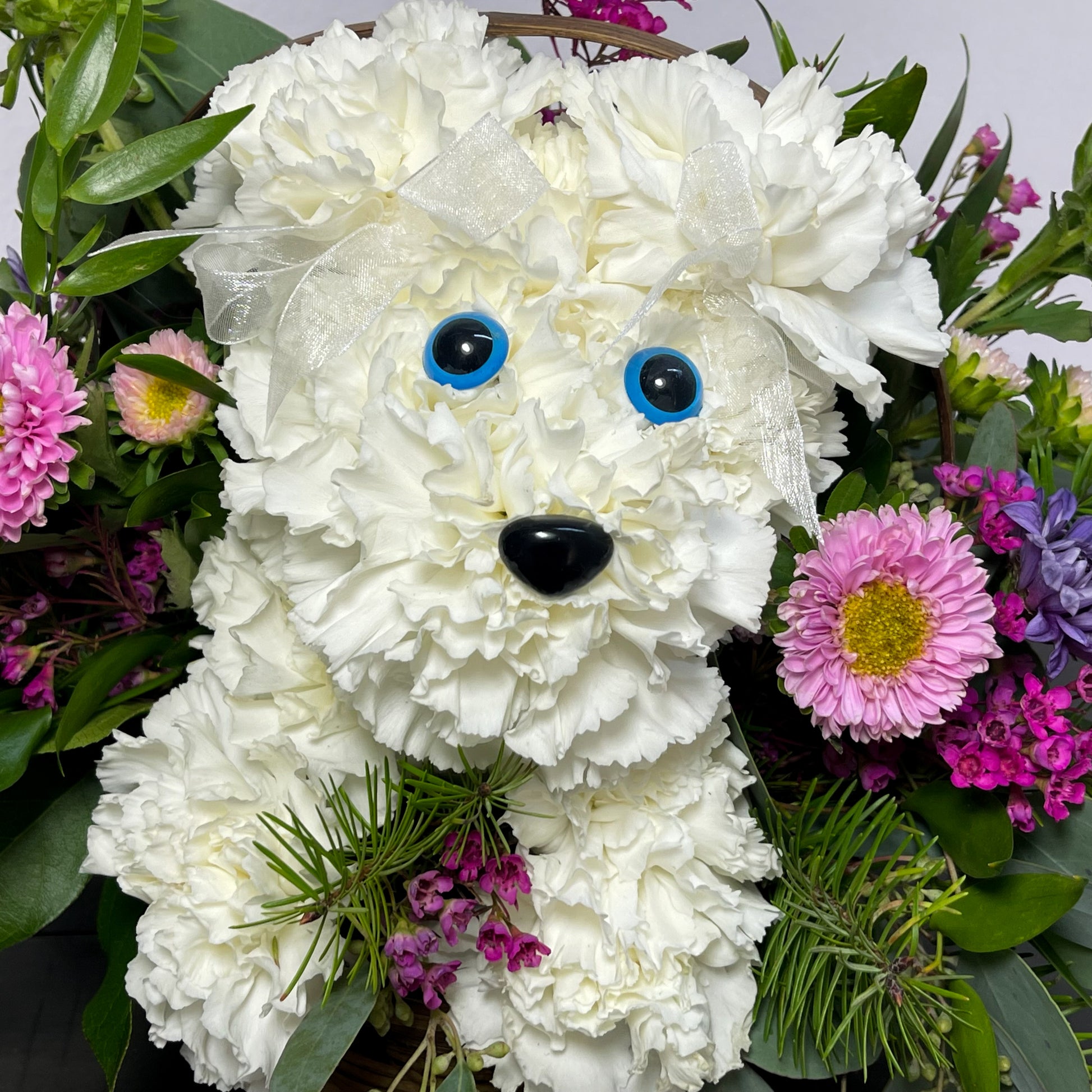 Imagine a dog unlike any other – sculpted entirely from carnations and the most beautiful seasonal flowers. This extraordinary companion requires no walks, no vet visits, and is guaranteed to bring sunshine into your life. And the most appealing feature? Absolutely no shedding!